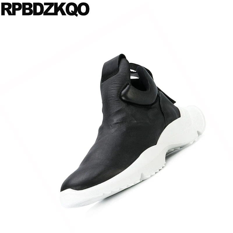 BEST Black High Sole Full Grain Leather Wedge Platform Ankle Men Slip On Casual Shoes Boots Top Booties