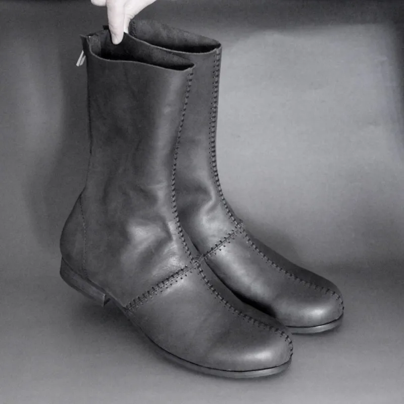 High Quality Vintage Cowboy Boots Men Designer Sewing Zip Biker High-Top Boots Luxury Winter Genuin