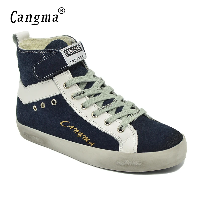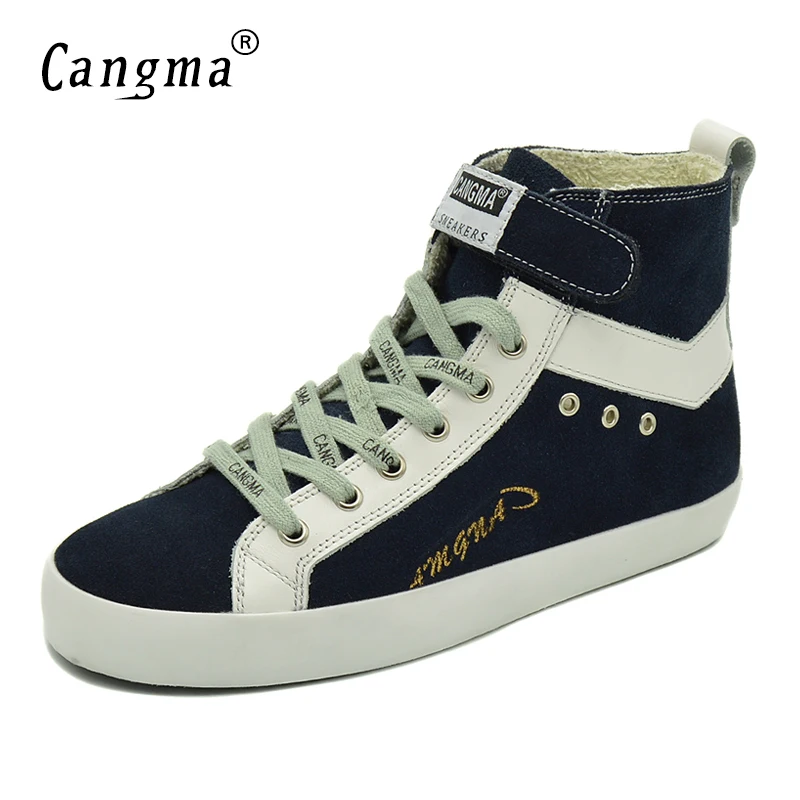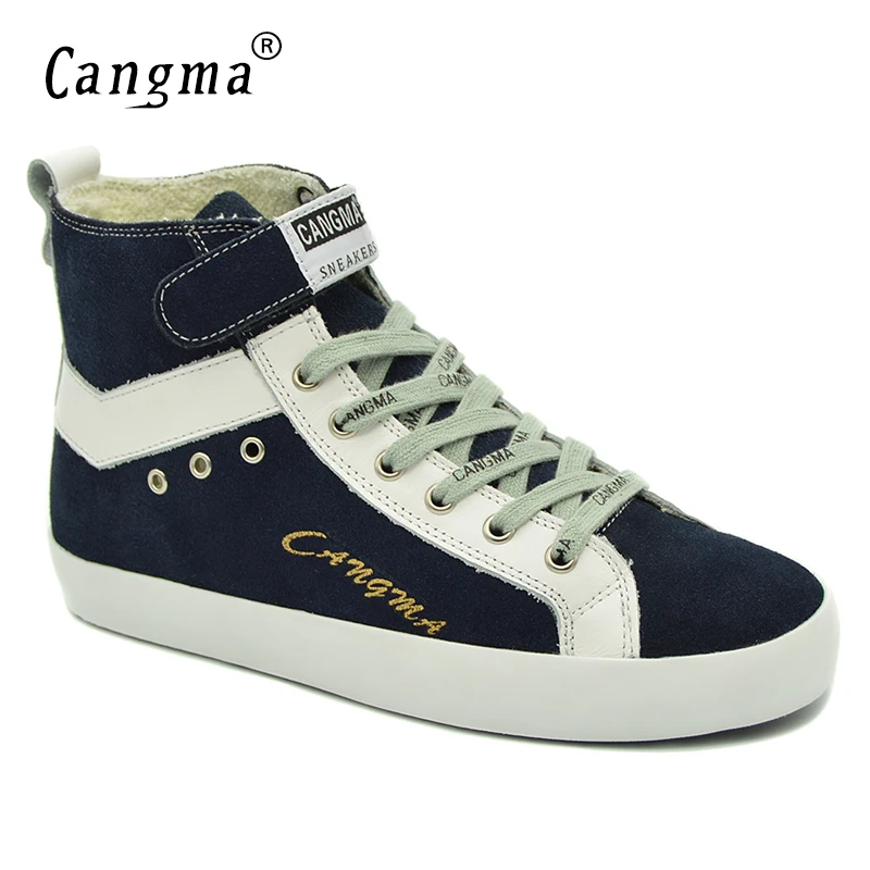 CANGMA Original Brand Ankle Boots Cow Suede Casual Shoes Womens Genuine Leather Sneakers Female Nav