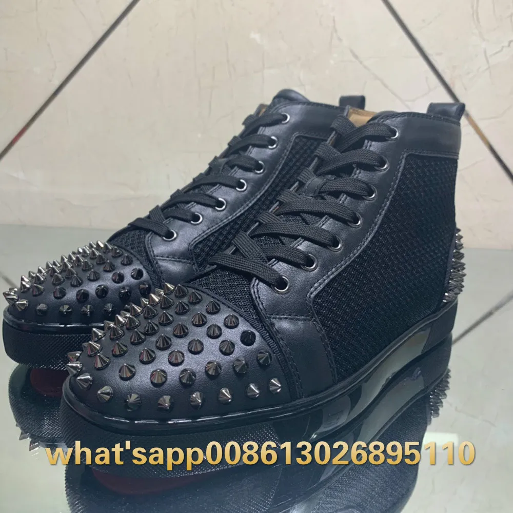 High Top Low Cut black Net Leather Handmade Silver Rivet Toecap heel Red bottoms Shoes Sneakers For