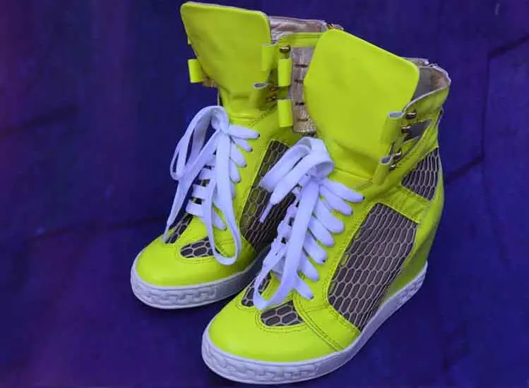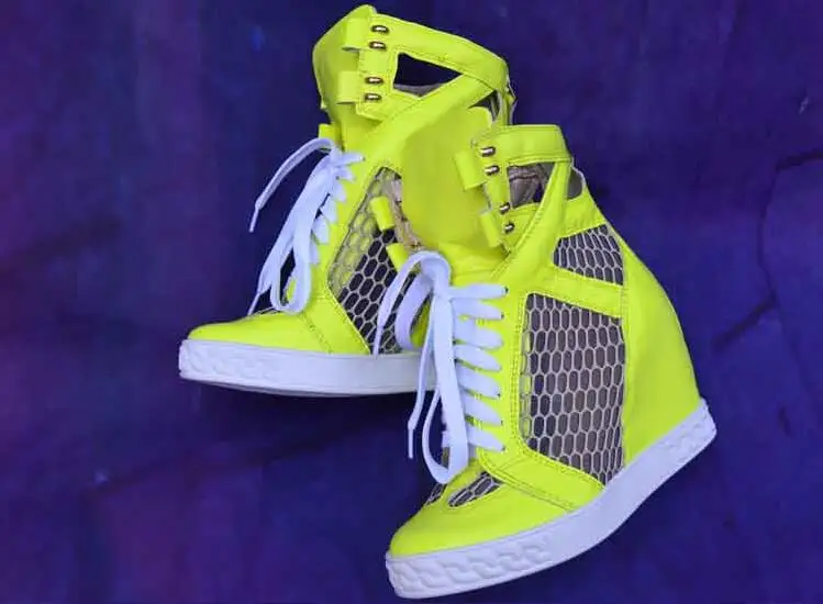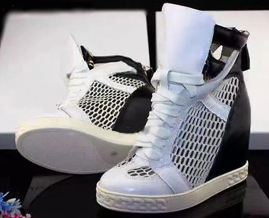 BEST QUALITY Black White Patchwork Height Increasing Ankle Boots Breathable Hollow Mesh Sneakers 8cm Wedge Heel