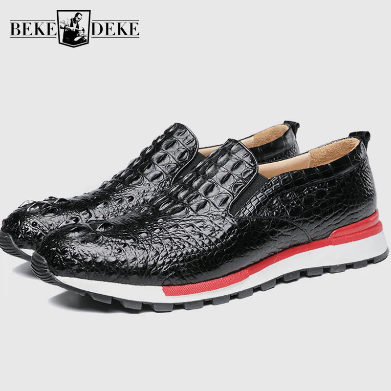 Brand 2019 New Genuine Leather Casual Shoes Men Loafers Slip On Flats Crocodile Boat Shoes Fashiona