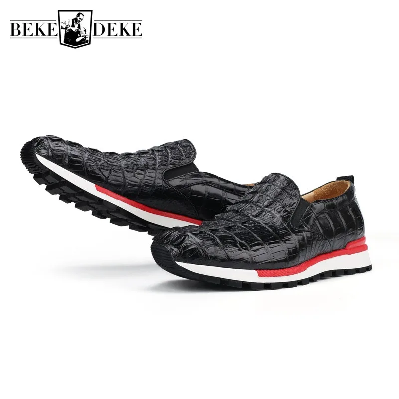 BEST Brand 2019 New Genuine Leather Casual Shoes Men Loafers Slip On Flats Crocodile Boat Shoes Fashiona