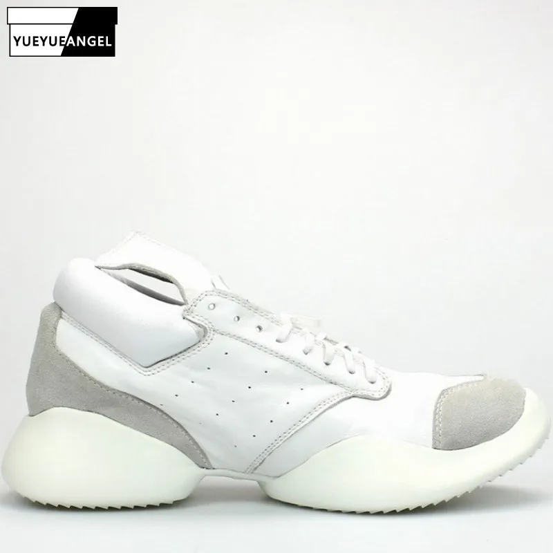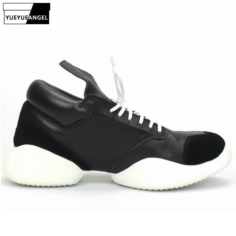 Casual Genuine Leather Summer Breathable Mens Sprots Shoes Personality Mix Color Lace Up Thick Bott