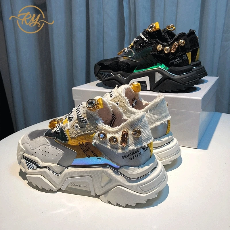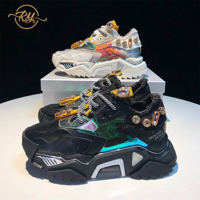 RY-RELAA women sneakers 2018 luxury shoes women designers Genuine Leather Rhinestone sneakers ins s