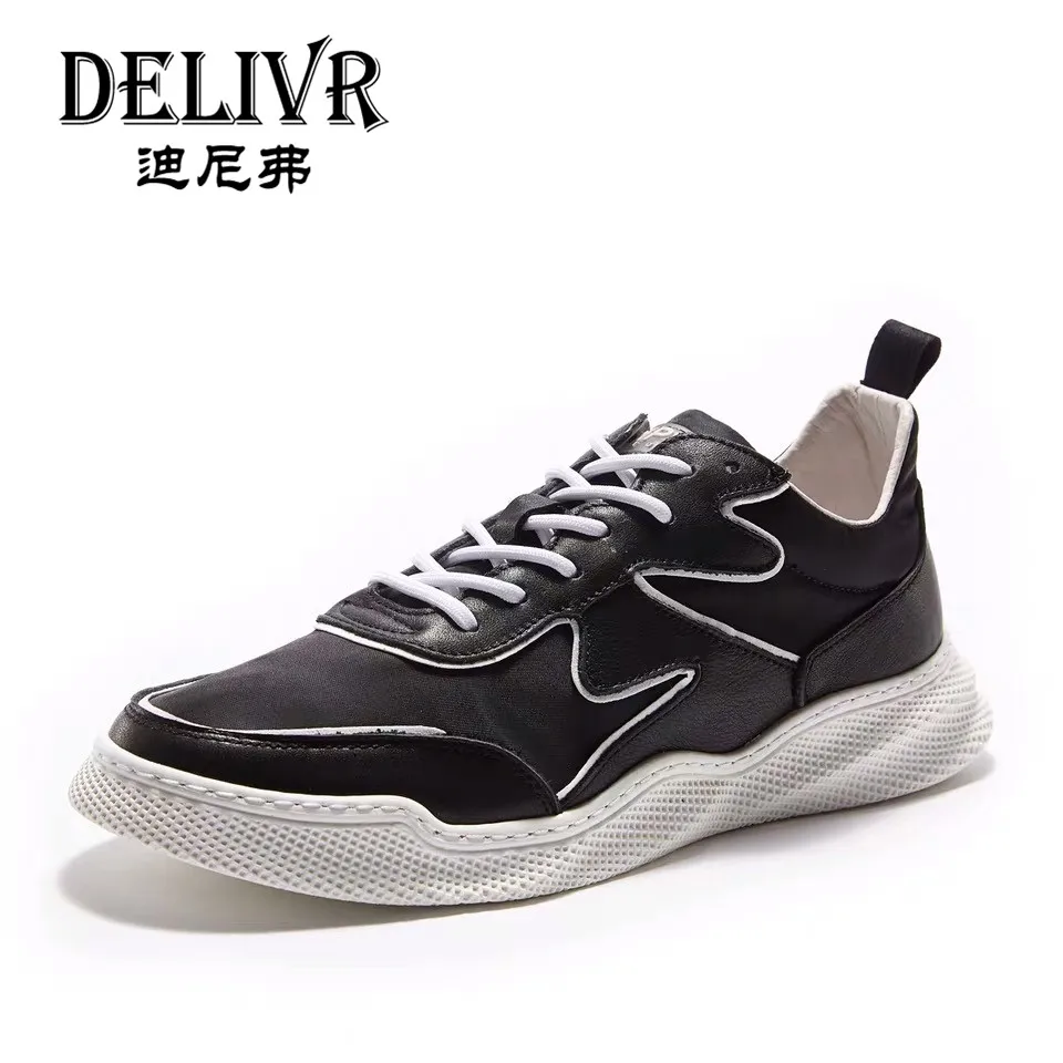 Delivr Casual Mens Shoes Genuine Leather 2019 New Arrival Casual Black Sneakers Men Luxury Men Snea