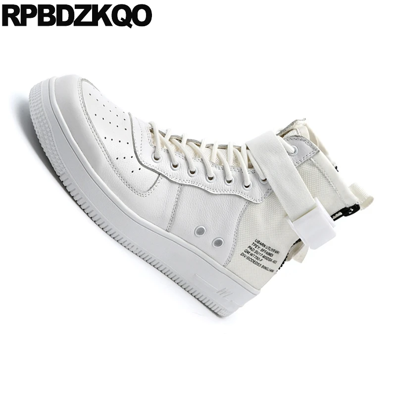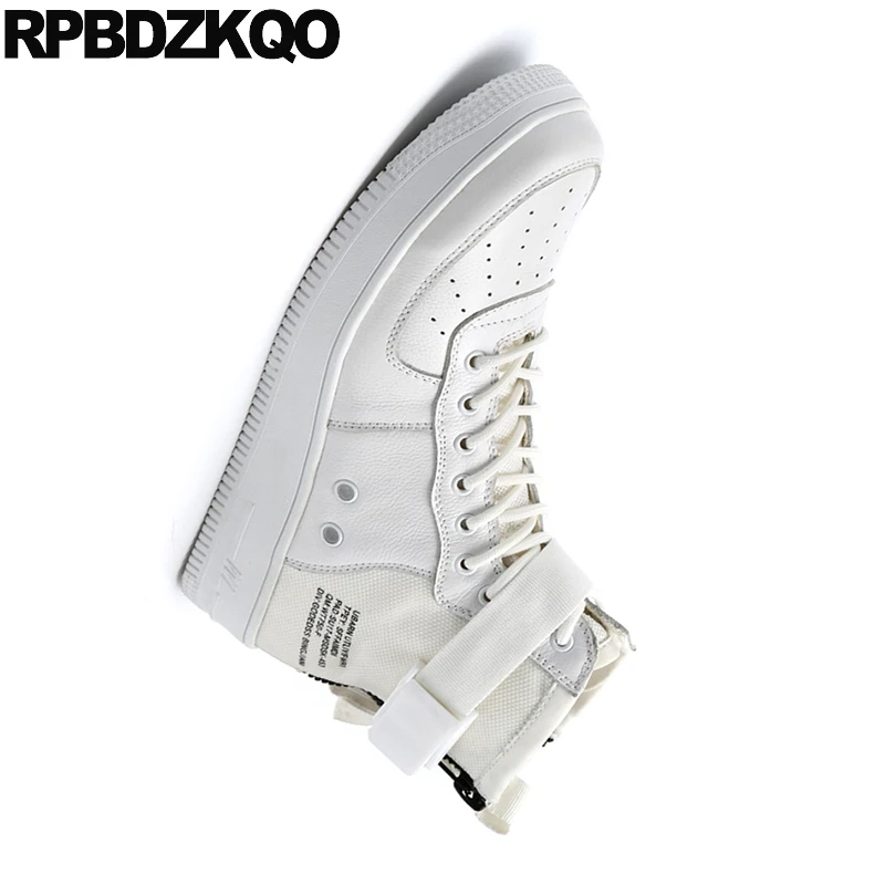 Full Grain Leather Platform Shoes Canvas Boots White Trainer Male Harajuku High Sneakers Booties Th